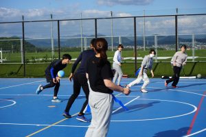 開会式では、参加者全員でラジオ体操によるウォーミングアップを行いました。午前はサッカーとバレーボール、午後はドッジボールとリレーを実施しました。コロナ禍以降、本学では初めてのイベントに、参加した学生・教職員は楽しそうに競技に取り組んでいました!
