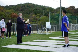 競技終了後にはビンゴ大会を行い、それぞれに景品を手にした後、閉会式に移りました。学長による閉会のあいさつと表彰式が執り行われ、大きな事故もなく無事に終了しました。