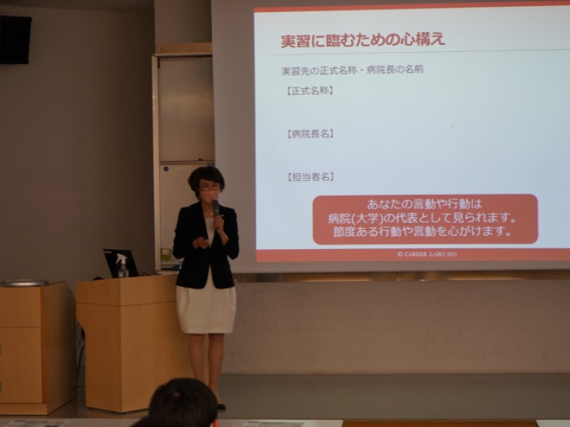 本格的な臨床実習、就職活動を控えた3年生を対象に、「実習前医療接遇マナー講座(実践編)」を開講しました。