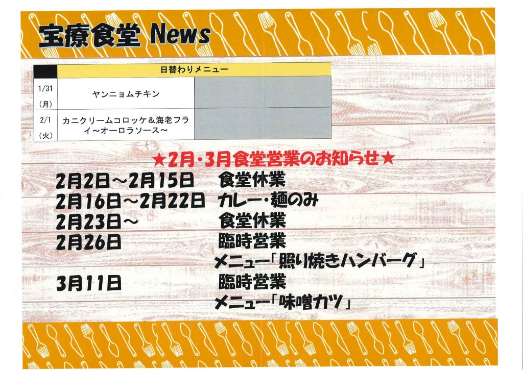 食堂および売店の営業について(2月以降)