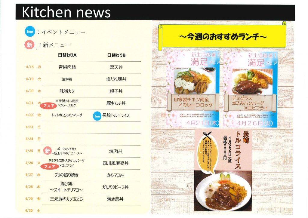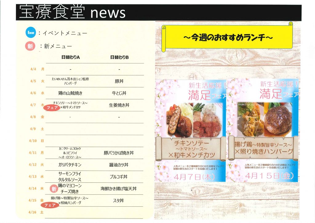 【宝療食堂】令和4年4月のメニューのご案内