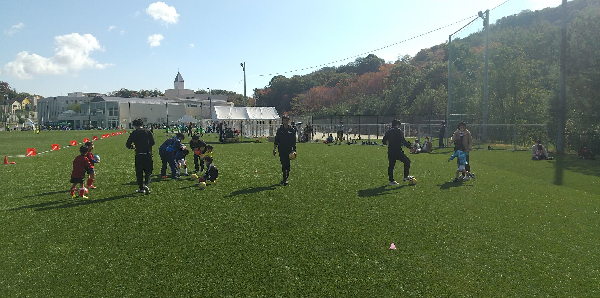 グラウンドではサッカー部主催で、 サッカークリニックを開催しました。