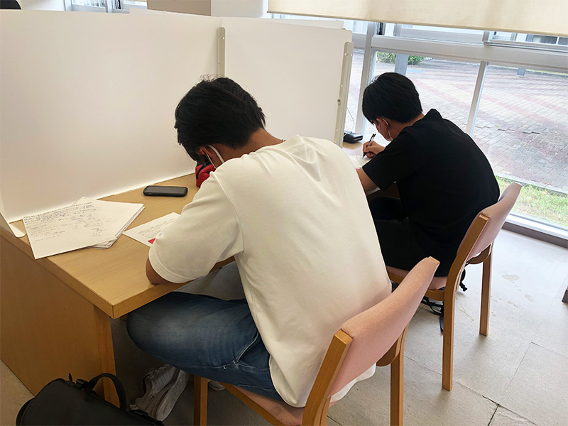 大学では、高校までとは違い1年が前期と後期の2期に分かれています。1年間を通して2回、単位を取得するための一大イベントが今まさに実施されているというわけです。大学生にはテスト期間中にも「空きコマ」があります。図書館で集中して勉強するもよし、食堂でみんなと教え合いするもよし。時間を有効活用しながら、みんな単位取得に向けて頑張っています。