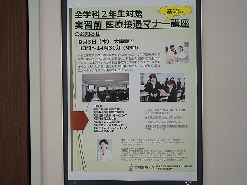令和3年8月5日(木)に、本学2年生を対象とした医療接遇マナー講座および感染症対策講習会を、学外講師をお招きして実施しました。