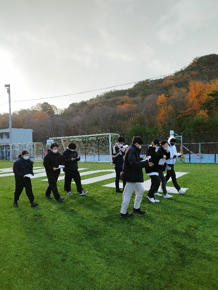 これは、まずグラウンドを歩きながら暗記を行い、その後、みんなで朝ごはんを食べるという活動です。誰もいないグラウンドを朝から歩くのは爽快でした。運動を行いながら勉強すると、普通に勉強するより効果的だということがわかっています。また、最近朝ごはんをあまり食べない学生が多いと聞きます。ただ朝ごはんを食べないと午前中に頭がぼんやりするということになりがちです。脳のエネルギー源であるブドウ糖を朝食でしっかり補給し、脳と体を目覚めさせ、勉強に集中しましょう。
