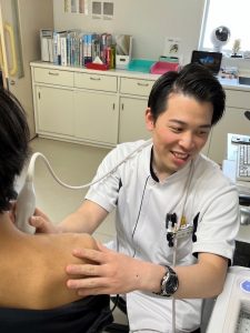 そんな中、うれしい知らせがありました。この度日頃の研究の成果が、日本整形外科超音波学会会誌に掲載されることとなりました。タイトルは「第1肋骨疲労骨折を超音波診断装置で確認できた13例」で、内容は症例として少ない第1肋骨疲労骨折に対し臨床で経験した13症例を通して、エコー検査の有効性が証明されたというものです。もちろん、中野君の努力と森本光俊先生の指導による成果ですが、大学での超音波診断装置を使った研究発表や卒業論文も少しは経験として活かされてのではないかと喜んでいます。笑