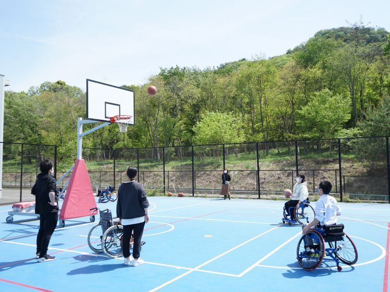 当日は車いすバスケットの体験会も行われました。