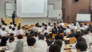 学生は、身近な卒業生が医療の現場で立派に活躍している姿に大変感銘を受けた様子で、とても興味深く、自分の将来を重ね合わせる