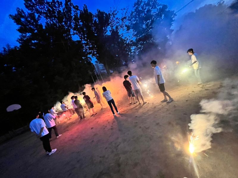 もちろん、合宿には勉強だけでなく、お楽しみもありますね。休み時間にはドッヂボールやバレーボールをして体を動かし、夜にはみんなでキャンプファイヤーや花火をしたり、夜は仲のいい友人と秘密の話をしたり…充実した3日間になりました!!
