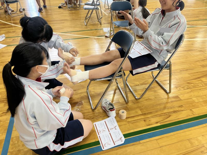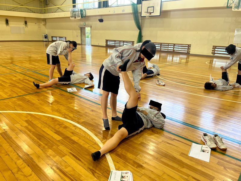 今回の出張講義では、「テーピング」と「ストレッチ」についての講義を行い、実技を主体として実施しました。