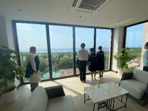 インターンシップ先「シギラベイサイドスイートアラマンダ」では館内見学や模擬授業、テーブルマナー講座、ランチ体験を行いました。