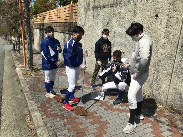 本日より、指定強化クラブ(硬式野球部・サッカー部・柔道部)の学生にご協力いただき、学内をはじめ近隣の住宅エリアにかけて、清掃活動を開始いたしました。