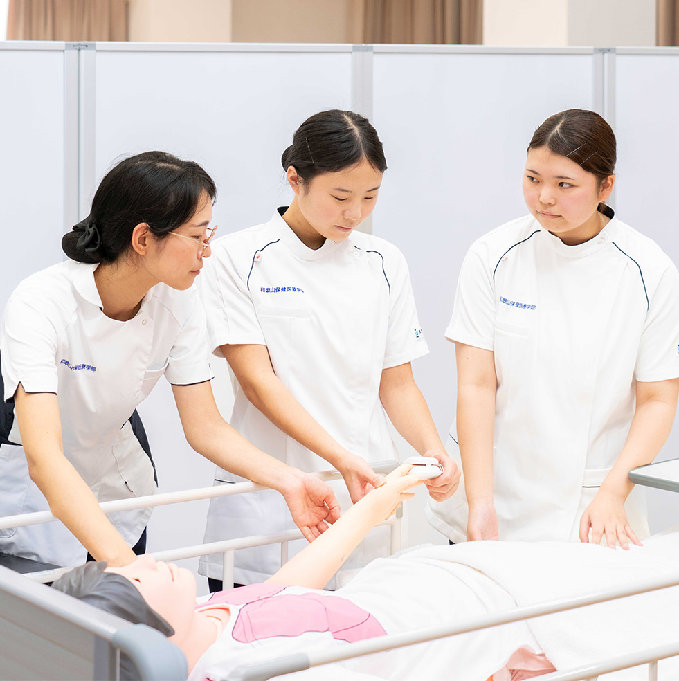 学生を指導するのは、臨地経験豊富な教員陣です。幅広い知識、確かな技術、豊かな人間力など、看護師の基礎を総合的に学ぶことができます。