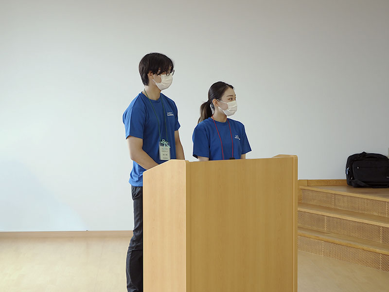 この日の司会進行は、本学学生2人によるフレッシュな掛け合いコンビ。そして、在学生交流コーナーやキャンパスツアーでも、学生スタッフが大活躍。